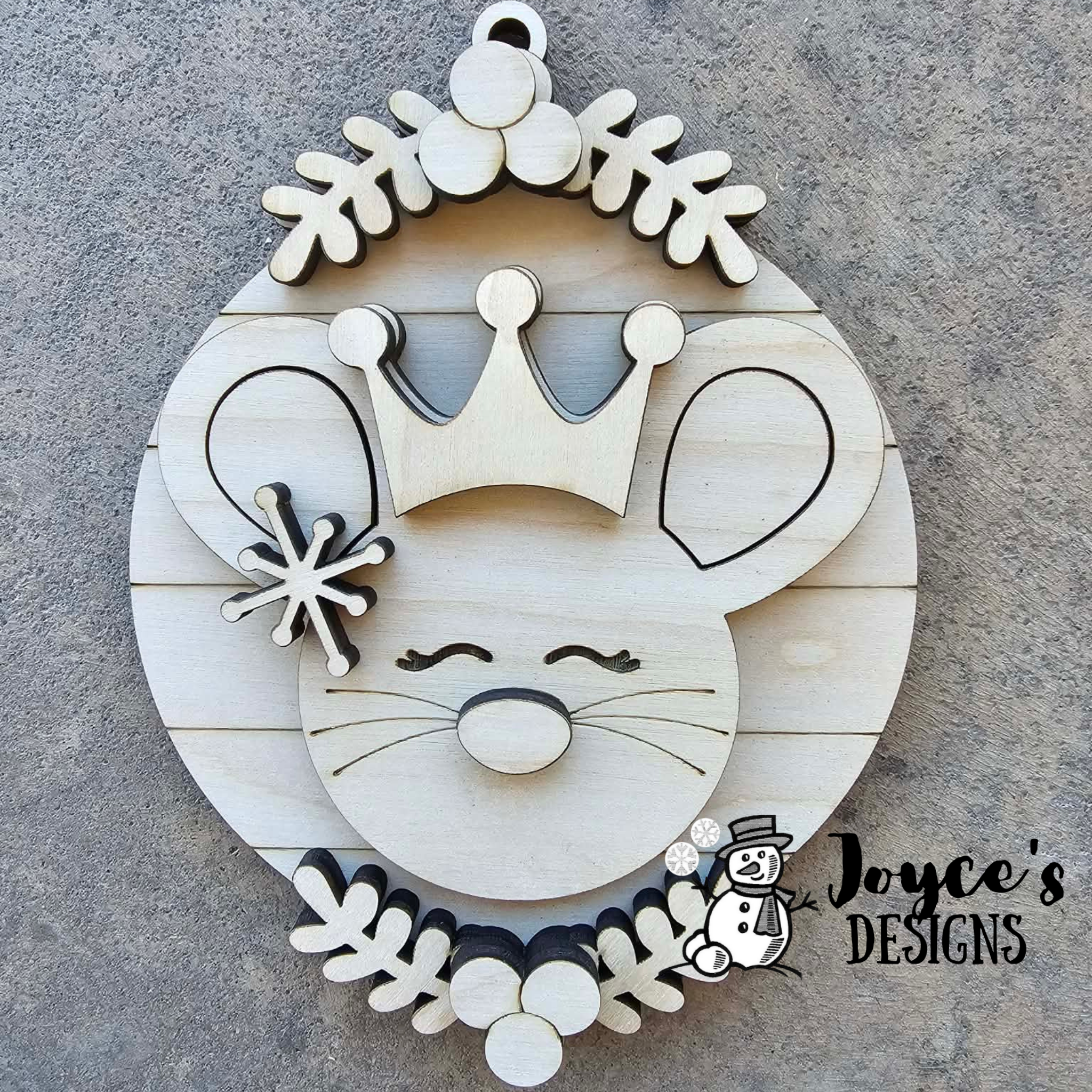 Add a touch of royal whimsy to your Christmas crafts with this Mouse King Ornament Wood Blank! Inspired by the beloved Nutcracker ballet, this 4.25" x 5.5" unfinished wood cutout features the charming crowned mouse—ready for painting, glittering, or personalizing with your own creative twist.
